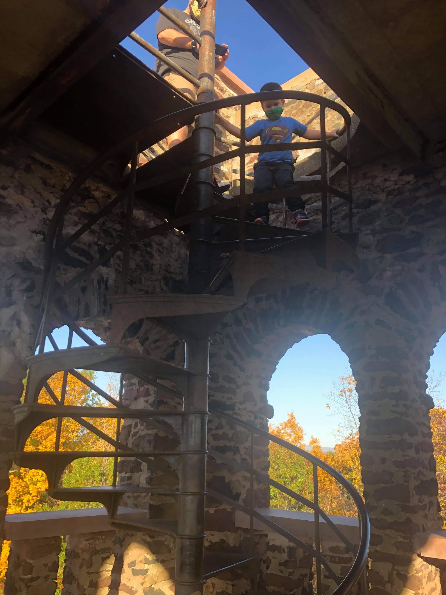 We drove up to the top of Mount Greylock mountain, the highest point in Massachusetts 3,491 feet which is the home of the Veterans War Memorial Tower, built in 1932 and standing 93 feet tall. The drive up we some of the prettiest foliage of the whole drive.